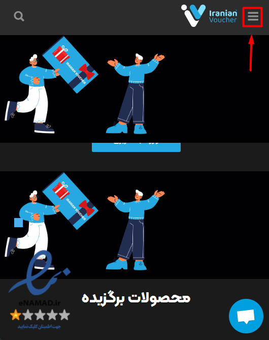 برای ثبت نام در سایت ابتدا مطابق تصویر بر روی سه خط بالا سمت راست صفحه همانطور که در تصویر نشان داده شده کلیک نمایید