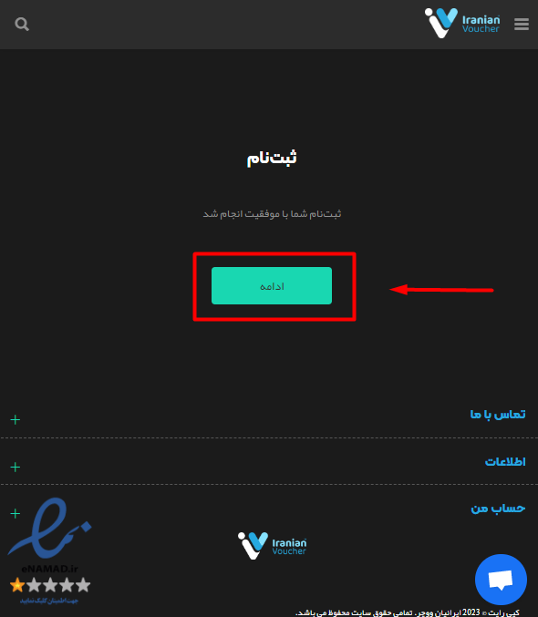 ثبت نام شما انجام می شود و باید در این مرحله گزینه ادامه را بزنید