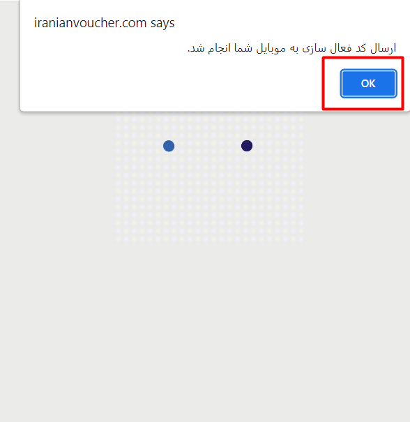 با کلیک بر روی گزینه ادامه کد فعال سازی به موبایل شما ارسال شده و بعد گزینهok را بزنید