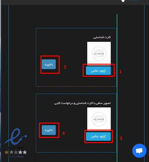 طبق تصویر زیر مدارک خواسته شده را بارگزاری و ذخیره کنید